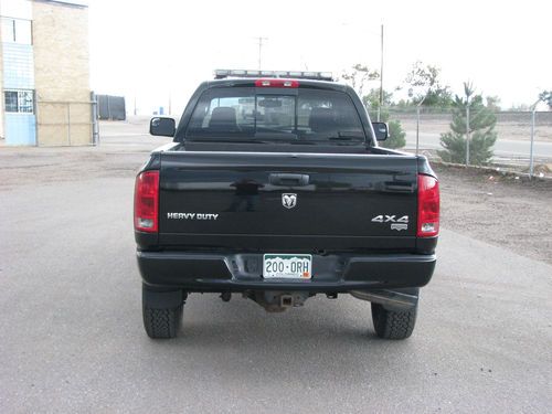 2005 Dodge 2500 Laramie, 4x4, 4 Door, Long Bed (8 Feet), 5.9 Cummins Diesel, Auto, Sport Appearance Package (Painted Bumpers, Grille). 1 Owner (Shows 2, transfered into my wife's name) Excellent Condition. Drives Like Brand New!!!!!! Never Had a Accident. ************ It is reported that there was a accident, No damage. Stop and go traffic on highway. Hit bumper in front of me at 5 miles an hour ************* Meticulous Maintenance. Duravac Full Synthetic Every 10,000 Miles on Engine. All Trans, Diff's Every 25,0000 miles. Spent Thousand's and Thousand's in Maintenance. Have all Service Records. Mileage is 85% Highway Miles. Truck was used to assist in Traffic Control and ran up and down Interstate I-70 through the Mountain Corridor. Has Full Lights and Sirens From Whelen. Spent $3700 Installing. Call or E-mail with questions. 720-519-5326. ********************** Bidder's with 10 or more Positive Feedbacks May Bid ONLY, Any Less MUST E-mail First for Approval. ********************* $1000 Deposit Due Within 24 hours of End of Auction. The Rest Due Within 7 Days. TEXT ME YOUR CELL NUMBER AND WILL FORWARD SHORT VIDEO OF LIGHTS IN ACTION. COULD NOT GET IT TO POST.