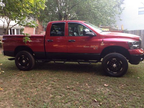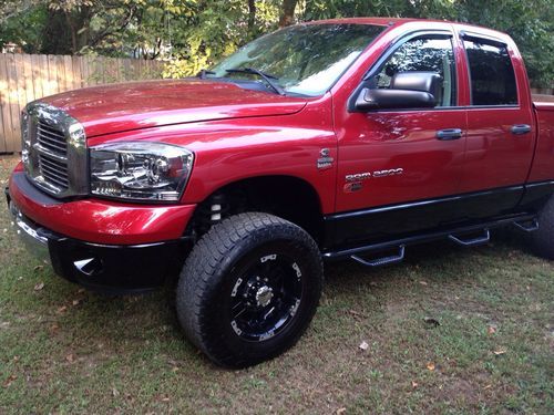 This is a 2006 Dodge Ram 2500 Quad Cab Laramie 4WD. It has been a non smoker and It is also equipped with keyless entry, leather seats, power driver seat with lumbar, leather wrapped steering wheel, cruise, fog lights, adjustable pedals, brake controller, aux input, dual zone climate control, trailer tow pkg and blackside steps. The exterior looks very nice and clean. This is great looking truck. The interior looks good and is loaded with features. The tires have over 15,000 miles remaining.