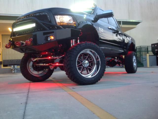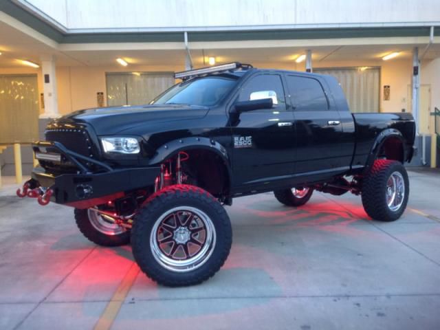This is a chance to own a one of a kind custom Ram 2500 Mega Cab 4X4 pick up truck. This 2013 Ram was professionally done by California Custom Sport Trucks and was built as a promotional vehicle. This truck has over 150k invested and you can own in for a fraction of what the cost to build would be. Only the best parts and componets were used in this build. Less than 600 documented miles. Kelderman 10 adjustable air ride lift kit (can be controlled by Smart Phone) Chrome Resi Fox Shocks Chrome Dual Steering Stabilizer American Force Masters Custom painted Face Plate 24x12 with -44 wheels Toyo Open Country M/T 40x15.50x24 tires Fab Fours Custom Painted rear bumper Fab Fours Custom Painted front bumper with pre-runner bar. Warn Xenon 10k winch with synthetic cable and Hawse fairlead Best Top Retractable Power Steps Rigid 50 E-Series roof Mounted LED light bar Rigid 28 E2-Series bumper mounted LED light bar Rigid SR-Q Series back up light mounted in rear bumper Rigid red 6-piece under bod Rock lights Hella 90mm Fog lights mounted in front bumper Custom designed head lights Custom Smoked Taillights, 3rd brake light, and cab roof lights. Royalty Core Custom Mesh Grille Factor 55 Pro Link XXL red anodized Red Anodized Monster Hooks on all four recovery points Spray in Bed Liner