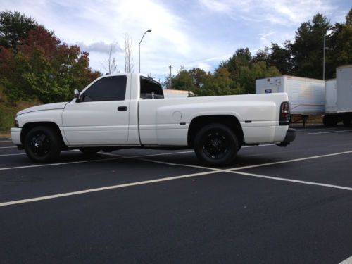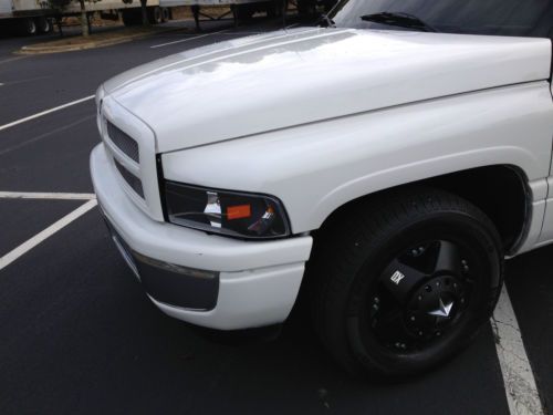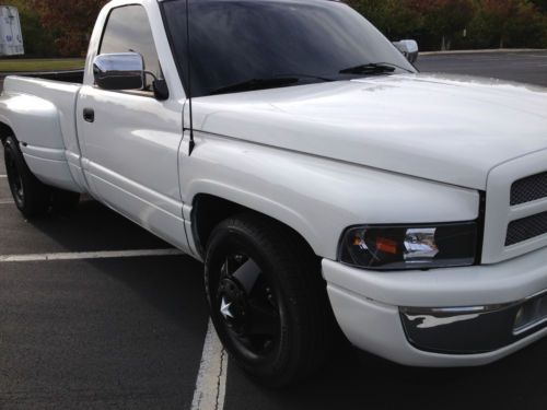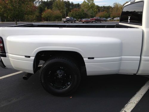 Below is a list of what makes this truck: - VIN: 1B7MC36C5TS586974 - 12 Valve 5.9L Cummins Diesel - New 5 speed manual transmission (less than 10,000 miles) - New Factory replacement clutch (less than 10,000 miles) - New brakes (rotors and pads) - New ball joints - New idler arm - New belt - New pitman arm - New steering stabilizer - New Valvoline synthetic fluids bumper to bumper - In-bed gooseneck ball hitch - Plastic bed liner - Cold AC - RECON LED Cab clearance lights - RECON LED Fender marker lights - RECON LED 3rd brake light - Black housing LED trail lights - Black housing head lights (with bright blue bulbs) - New Michelin tires (less than 1,000 miles) - New Rockstar dually wheels (less than 1,000 miles) - Lowered 2” in the front and 6” in the rear (all leafs are still present) - New white paint job (grille and bumper painted to match) - 5% tint with 35% on windshield - Straight piped exhaust with 4” MBRP tip - New In-Dash 7” flip-up TV/DVD/MPS/Ipod/Sirus - CLEAN AND CLEAR TITLE IN HAND - CARFAX INCLUDED The BAD: - 245,XXX miles. - Leaks oil (if a 12 valve does not leak oil, then the motor is dry) - Driver’s side window switches short every now and then. Windows roll up and down just fine. - Paint is not a $10,000 paint job. However, it does look good. - Interior does not look as good as the exterior. - Heater core is by-passed (probably a bad heater core). - Parking brake does not work. - Trailer wiring is not in place. -