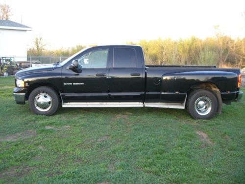 UP FOR SALE IS THIS 2003 DODGE RAM SLT QUAD CAB 3500 DUALLY WITH THE CUMMINS 24 VALVE TURBO DIESEL ENGINE. 235,000 MILES, AUTOMATIC TRANSMISSION, ALL POWER, LEATHER, SEAT COVERS, NEWER TIRES, HEAVY DUTY HITCH, AMP POP-OUT REAR BUMPER STEP, BED LINER WITH RUBBER MAT COVERING A 5TH WHEEL SET-UP, STAINLESS GRILL INSERTS, AIR DOG FUEL PUMP W/FILTERS THIS TRUCK WAS MATICULOUSLY MAINTAINED: REGULAR OIL AND FILTER CHANGES, COOLING SYSTEM FLUSHES, P/S AND BRAKE FLUID FLUSHES, UPPER AND LOWER RADIATOR HOSES, THERMOSTAT, BATTERIES, FRONT AND REAR SHOCKS, AIR BAGS, UPPER A-ARMS AND LOWER BALL JOINTS, NEW INJECTORS, NEW EXHAUST, TRANSMISSION WAS REBUILT W/ T/C AND TRANS MOUNT@ 166K MILES, NEWER TIRES(19K ON TIRES); NEW FRONT BRAKES WITH ROTORS, TRANSMISSION SERVICE(ALL WITHIN PAST 8,000 MILES).. SO MUCH TO LIST ASK QUESTIONS IF YOU HAVE ANY. AS IS WHERE IS NO WARRANTY OFFERED OR IMPLIED. |