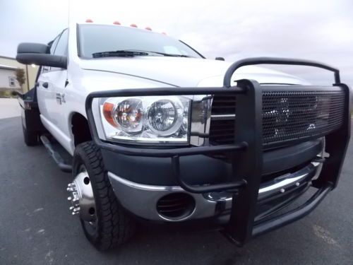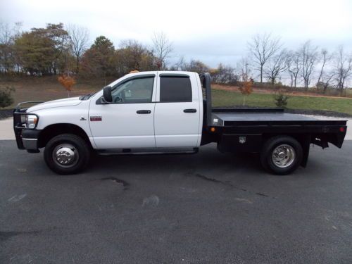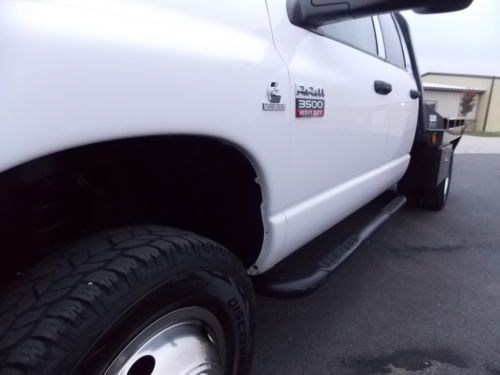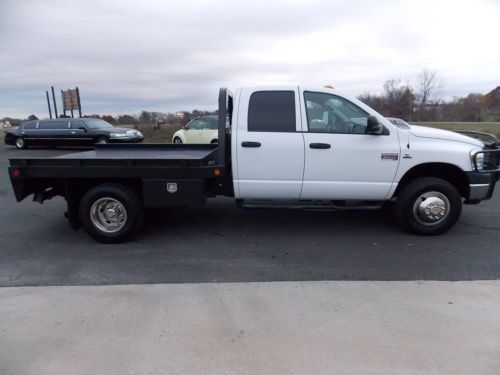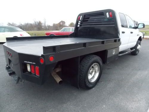 2007 DODGE RAM 3500 SLT WITH LIKE NEW C&M FLATBED POWERED BY THE 6.7L CUMMINS TURBO DIESEL. THIS TRUCK IS READY TO GET THE JOB DONE AT EITHER WORK OR HOME WITH FOUR DOORS FOR THE CREW OR FAMILY WITH ALL THE OPTIONS ONE DESIRES AND VINYL FLOOR FOR EASY CLEANING. THIS TRUCK WILL NOT LAST LONG, THESE CUMMINS DEISELS SELL VERY QUICK FOR SO DON'T HESITATE!!! INTERIOR: NO MAJOR FLAWS TO REPORT. CREW CAB FULL FOR DOORS, SPLIT BENCH UP FRONT WITH CENTER CONSOLE. TONS OF OPTIONS AS YOU CAN SEE TRUCK DOESN'T SHOW ANY SIGNS OF ABUSE OR NEGLECT. SEE PICTURES FOR ALL THE DETAILS. EXTERIOR: THIS TRUCK HAS BEEN VERY WELL MAINTAINED AND IT SHOWS. NO SIGNS OF ABUSE OR NEGLECT. NOT BEAT UP FROM FARM OR HEAVY DUTY USE. NICE AFTERMARKET RANCH HAND STYLE FRONT BUMPER MATCHES REALLY NICE TO THE LIKE NEW C AND M FLATBED WITH EASY ACCESS 5TH WHEEL BALL NOT USED MUCH AT ALL. REALLY SHARP TRUCK, WILL SELL QUICK. MECHANICAL: NO AFTERMARKET PERFORMANCE CHIP OR PROGRAMMER ! SIX MATCHING TIRES WITH PLENTY OF TREAD FOR MANY MILES TO COME. TRUCK PERFORMS GREAT SEE PICTURES AND VIDEO FOR DETAILS ON FULL FUNCTION! WANT TO SEE MORE THAN JUST PICTURES? LOCATE OUR VIDEO LINK OF THIS WITH YOUTUBE! http://www.youtube.com/watch?v=qXoi86VvkiM I AM SELLING THIS DODGE RAM AS A 7 DAY NO RESERVE AUCTION!!!! THE WINNING BIDDER WILL GET THIS TRUCK AT THE END OF THE 7 DAY NO RESERVE AUCTION!!! I DO ASK ALL BIDDERS TO BE A SERIOUS BUYER AND HAVE ALL FINANCING AND INSPECTIONS COMPLETED BEFORE THE END OF THE AUCTION!!! I DO HAVE THIS TRUCK ON OTHER ONLINE WEBSITES (CRAIGSLIST) AND OF COURSE IS ARE FOR SALE LOCALLY. THAT BEING SAID I DO RESERVE THE RIGHT TO END THE AUCTION AT ANYTIME DUE TO A SELL. AGAIN, FINANCING MUST BE IN ORDER AND INSPECTIONS MUST BE COMPLETED PRIOR PURCHASE OR END OF AUCTION (WHICHEVER MAY COME FIRST) ALL SALES ARE FINAL!!! BUYER IS RESPONSIBLE FOR PICKING UP TRUCK OR DELIVERY. ALTHOUGH I CAN ASSIST WITH DELIVERY AT BUYERS EXPENSE. WATCH VIDEO THEN CALL FOR ANY QUESTIONS OR TO BUY NOW.