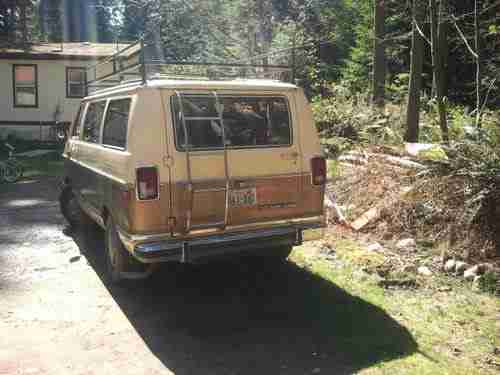 Dodge Prospector Van circa 1985. Engine runs fine. Transmission was taking 20 minutes or so to engage, and then, on the last trip with this van, it would not go in reverse. Body and paint are in fairly good condition considering age. Some rust spots. Interior not so good. Upholstery on seats good, but headliner gone, and have had some leaks around the doors, so carpet wet/detached.