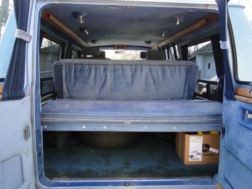 Very Nice Van always Garage stored and well maintained, Runs and drives good. Has rebuilt title but has no needs, Been on the road for 20yrs! The owner purchased with front end needing repair in 1994 , they had a new nose put on it and used it for Trips and Vacations. The Van is a Classic being 25 yrs old . It has no rust and the undercarriage is in very nice condition. It has had the transmission rebuilt a few yrs ago , Has New carpet in the front, new tire , recent tune up ,brakes, oil change. Trans. Has a over drive button . comes with a trailer hitch. 318 ci. throttle body injected motor, solid and strong. I purchased to tote my 9 grandkids in and have found that I will not be seeing them much this year so instead of storing it I have put it up for sale. Van has been gone thru by my mechanic and any needs taken care of. Its a older van so I didn't want any surprises will driving. Van gets a lot of attention you just don't see them around in this condition. There is a piece of fiberglass missing on rear flair I do have the piece to repair. |