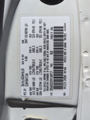 VIN (Vehicle Identification Number): 2b5wb35z9yk160717