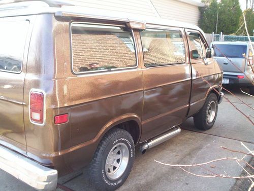 You are bidding on a 1987 dodge B150 van.This a rear van.The only one Ive ever seen with a 318 with a factory 4 speed manual tranni New paint, side pipes, visor , shaved door handles,roof wing ,tinted windows, train air horns, walnut steering wheel,class 3 tow hitch .fog lights.Just tuned up new starter 5 finger clutch,The interior is factory finished with a second row bench seat that sits 3 .It runs great .I drive 300 miles on the weekends round trip with the family upstate. This van is a real power house.I have over 6500.00 invested into this van.Drive it home today. Please emal me with any questions or call 516 652 5139.Buyer resposable for shipping. Thanks for looking and happy bidding