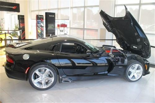SRT Viper trim. Onboard Communications System, Alloy Wheels, Premium Sound System, iPod/MP3 Input, Satellite Radio. Warranty 5 yrs/100k Miles - Drivetrain Warranty; AND MORE! KEY FEATURES INCLUDE Premium Sound System, Satellite Radio, iPod/MP3 Input, Onboard Communications System, Aluminum Wheels. MP3 Player, Remote Trunk Release, Keyless Entry, Steering Wheel Controls, Electronic Stability Control. WHO WE ARE Rick Hendrick Jeep Chrysler Dodge is the premier dealership for New and Used Jeep, Chrysler & Dodge vehicles in Charleston, South Carolina and specializing in Jeep, Chrysler & Dodge Sales, Finance, Service, and Parts. At Rick Hendrick Jeep Chrysler Dodge, our customers are being provided with high quality service and excellent after sales support. Closing Fee is included in the advertised/sales price. Please confirm the accuracy of the included equipment by calling us prior to purchase. - This 2013 Dodge SRT Viper 2dr 2dr Cpe Coupe features a 8.4L SFI V10 engine 10cyl Gasoline engine. It is equipped with a 6 Speed Manual transmission. The vehicle is VENOM BLK with a Other interior. It is offered with a full factory warranty. - Air Conditioning, Climate Control, Cruise Control, Power Steering, Power Windows, Power Door Locks, Steering Wheel Radio Controls, Passenger Airbag, Keyless Entry, Security System, ABS Brakes, Dynamic Stability, Rear Defogger, Intermittent Wipers, AM/FM, , iPod/MP3 Input, Onboard Communications System, MP3 Player, Remote Trunk Release, Adjustable Pedals, Bucket Seats, Electrochromic rearview mirror, HID headlights, Tire Pressure Monitoring System, 4-Wheel Disc Brakes, Locking Rear Differential, Driver Air Bag, Universal Garage Door Opener, Auto-Off Headlights, Power Driver Mirror, Auxiliary Pwr Outlet, Adjustable Steering Wheel, Emergency Trunk Release, Tires - Rear Performance, Tires - Front Performance, Cloth Seats - Be sure to utilize our great team of Internet Sales Managers whether you are browsing online or decide to come see our Charleston car dealership for yourself!