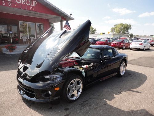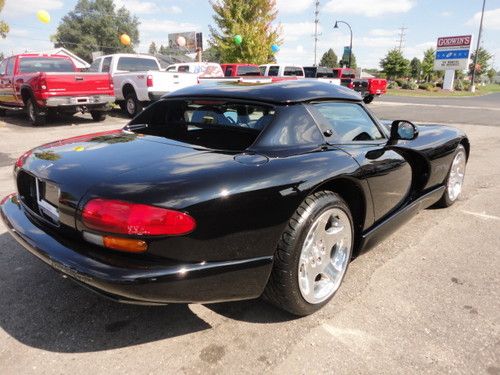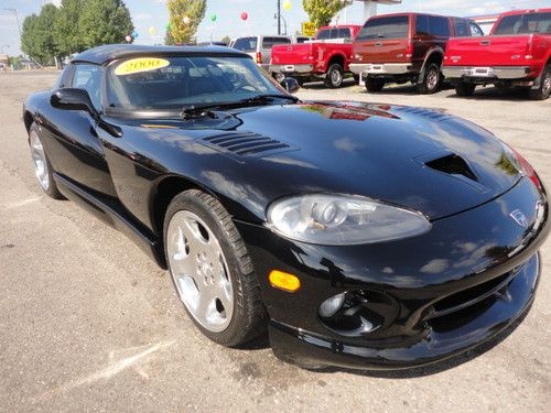 This 2000 Dodge Viper RT-10 comes with both hard and soft tops, factory car cover, two sets of keys with fobs and a clean CarFax report! We were excited to buy this rare beauty so we're making it available on eBay with NO RESERVE for THOUSANDS OF DOLLARS below book value! The car has obviously been garage-kept! The black paint shines like a mirror! Black leather interior is like new. The engine runs and sounds perfect and the transmission shifts flawlessly. Auto Group's owner drove the car home last night and said "Wow! That engine has a LOT of power!" He's been in the business 35 years so it takes a rare vehicle to get his attention! Bid with confidence as you will not be disappointed!