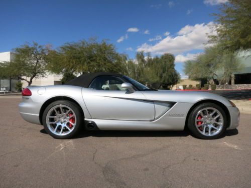 Here is your chance to own one of he most beautiful sports cars of all time, the Dodge Viper SRT-10! A stunning vehicle born out of the factory in Viper Bright Silver Metallic. A real head turner with performance to match! 505 Horses / 525 lb-ft torque SCREAM through the 8.3L V10 Viper powerhouse. Motor affixed to a Six Speed manual transmission as standard for Vipers. Factory AM FM CD with 6 disc changer, 4 Disc brakes, 19 and 18 inch factory polished chrome wheels on Michelin Pilot Sport tires with plenty of tread. Exclusive SRT-10 interior, SRT-10 Black leather seats, HID headlamps, Easy to use convertible top, power doors and windows, PUSH button start. This is a very hard to find vehicle all-stock, no interior, exterior or performance mods as should be for a collector's Viper. Do not let the mileage fool you this Viper has been very well nurtured and cared for. Viper has fully documented service history and recent complete tune & lube. Absolutely no leaks, smoke or funny business. Everything works as it should on the Viper. Body is straight as an arrow and free of any damage or rust. Hard to find color combo. Any questions call me 714-224-6308 - Frank. Total SRT-10 production for 2014 was 2,433 Vipers! Talk about Rarity! source: https://www.theviperstore.com/Information_Viper_Production_Stats.htm Mechanically this Viper is breathtaking as well. Drives very strong, has a very healthy ten cylinder motor and a six speed transmission that shifts nice and smooth to pull you back in your seat! This Viper has always been serviced at authorized dealership. This Viper is very fast and pulls hard with Viper powered V10. Was recently tuned and lubed, needs nothing else. Own your dream car today, I am a private party Viper enthusiast. Any questions call me 714-224-6308 - Frank. Overall the exterior of this car is in Excellent condition and the paint still looks like glass. The Viper does show on its Carfax and Autocheck reports that it was involved in a minor accident. What happened was the previous owner hit a cub with the tires damaging both wheels and the previous owner turned that claim into the insurance company and received two new wheels and tires - this is why that shows up on the Carfax and Autocheck. It does show on the reports as "Minor Incident", see below. It was nothing major at all. You can see this for yourself on the reports to confirm that it shows as "minor." This car has never been hit or had any body or paint work, it is 100% original body and paint. Your mechanic and auto body expert is welcome to inspect the Viper, I assure you it is flawless and free of any paint work. Any questions call me 714-224-6308 - Frank. text below