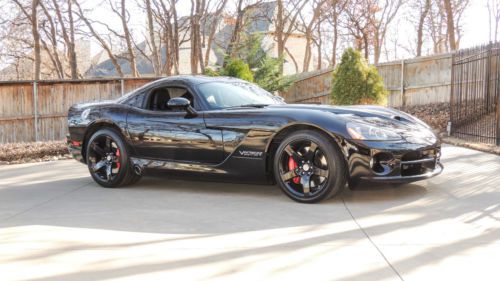Just turned over 26,000 miles...Clear title, Clean Car Fax, no accidents - No problems since I bought the car in early 2009...(I bought a factory extended warranty, and never used it once!) Always garaged, Excellent condition, Glossy paint. It comes with the original owners manual, original window sticker, and 2 key sets. I am the second owner, and have the title in hand. All pictures are current: Taken in February 2014 & May 2014. Modifications: -Upgraded Gen IV Hood -SRT Five-Spokes Powdercoated Gloss Black -Corsa Track Exhaust System -Random Tech Cats -Custom intake w/ K&N Filters (Have stock intake/filters as well) -SCT custom tune w/ 170 thermostat from DC Performance (SCT Tuner w/ stock tune included) -Nitto Invo tires (Recent, low miles) -Die Hard battery -MGW Shifter, MGW cup hold decor. -Mopar Carbon Fiber-Look Center Console -Lloyd Viper SRT-10 Logo Mats I do know that the original owner had the engine replaced under warranty by Dodge at 14K miles, so the engine itself is at approx. 12K miles. It's been strong, reliable, and has been free of any annoying tapping/ticking noises that I've heard on other Vipers. Oil changed regularly w/ synthetic. Engine burns no oil - Oil level remains constant between oil changes. Engine sounds strong, and makes no strange noises; no abnormal ticking or tapping noises. The transmission/clutch shift very smoothly. The car drives straight, and runs just like it did when I bought it in 2009. Actually it runs a lot better/cleaner with the custom tune. Air conditioner blows cold. I have owned this Viper since early 2009, and immediately bought a factory extended warranty through Dodge/Chrysler. I never had an issue that made me want to take the car to the dealership, and risk dealership damage, carelessness. The car’s driver-side window will likely need a new window regulator at some point, which is very common on these cars. The window opens & closes fine, but periodically does not auto-drop when exiting the car. I have always left the windows cracked, or down when driving, so it has never been an issue for me. Also, the tire pressure warning notification is on, as the tire pressure sensors will need to be re-synced to the car. Again, I eventually would have gotten this fixed, but wanted to avoid possible wheel damage ect. All tires are at 29, and none leak any air. The car has been driven, just over 26,000 miles, so it does have minor paint imperfections on front bumper, hood ect...