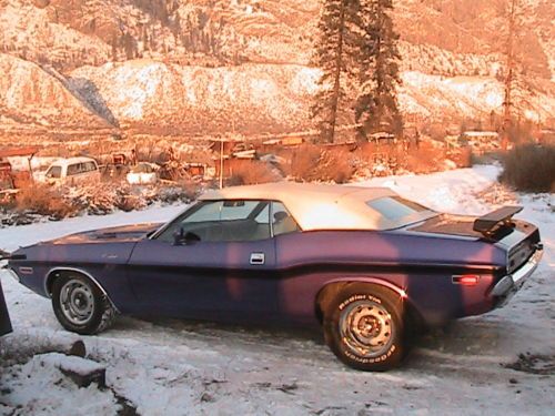 This is the first time I have ever offered this car for sale. My 1970 Dodge Challenger R/T Plum Crazy Hemi Convertible clone car. It runs with a crate 528 cubic inch aluminum heads Hemi engine with 610 horsepower and 650 ft-lbs of torque. Custom built 727 automatic transmission, 8 3/4 sure grip posi traction, 3:23 rear axle, power disc brakes with electric vacuum pump and power steering. IT is loaded with all new rubber door and trunk seals, black side stripe decals, black stripe on R/T hood, 426 metal emblems on hood, dual painted mirrors, flip top gas cap, rally gauges, tack, and power top. A cost of over $120,000.00 was spent building this beautiful show car just prior to me driving it about 1900 miles and that was a very cool once in a life time kind of experienc and pleasure. It's not any day or every day when a Hemi challenger convertible pulls up to the gas pumps, in fact every time I did , before I turned the engine off there was a croud gathered around it.The tack and speed odometer work well and the total milage registered on the odometer is 11878. This may be the actual miles on the body but I'am not sure of that but of course by looking at it you would think it had 78 miles. I'am getting into my senior years now and with regrets due to health issues I'am forced to sell this car as well as other cars that I own. The car is located on British Columbia,Canada and it can be sold with either a USA registration or a Canadian registration, I can do that for the buyer. The seller shall and will make every responsible effort to disclose any known defects associated with this vehicle at the buyer's request prior to the close of the auction.All the winter photos were taken in Nov 2013 and it was about 10 below zero thats why I did not snap the toneau cover down tightly, if it were sommer then it would fit nicely.Now that I have decided to sell this car there is two seprate locals gents that are trying to put a deal together ,so if any one of them come up with the funds before the auction runs its course then I do reserve the right to stop the auction and sell it locally. THIS IS GOING FOR A SECOND AND FINAL ROUND TO SEE IF I CAN GET ANY CLOSER TO MY LOWEST DOLLAR.