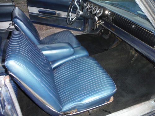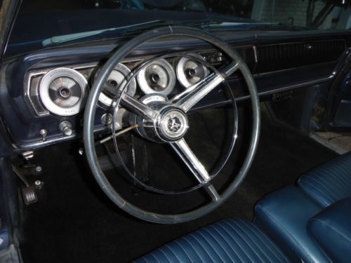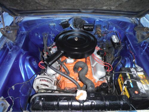 it original. It's blue with blue interior. It sports a 273 cubic inch V8 and automatic transmission with power steering. 150 MPH speedometer