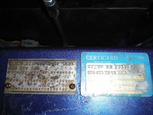 turns heads. This car still has the original inner fender tag and protection card. Amazing potential For Hemi or 440?
