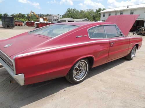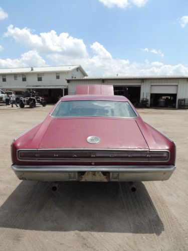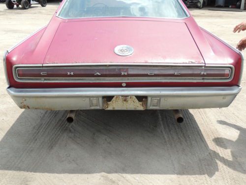 Barn find ! 1967 Dodge Charger was born with a 318 motor and automatic transmission. Now has a 413 wedge motor with a 833 4 speed transmission. The car will run and drive. But needs brake work . Last time registered was in 2002 . Over all car is solid has solid floor boards , no rust in engine compartment or in trunk. Does need a trunk lid as you can see in the pictures. Also reserve the right to end auction do to car for sale locally