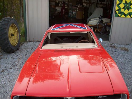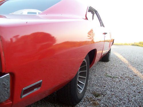 1970 Dodge Charger R/T. Car has been fitted with a 1969 front end to build a General Lee. I bought this car as is for a project build but unforeseen circumstances are forcing me to sell. I have not touched the car since bringing it home several months ago. Previous owner had taken most of the car apart and had started reassembling it.. Car has no motor or trans. Body looks to be pretty solid. 1 door is from a 68 model. Has had new rear qtrs. installed. front fender parking lights have been filled in. There is some body filler in places such as top of passenger front fender, front marker light holes, maybe in rockers?, around rear window at bottom where new metal was installed, and front valance has been skim coated. Rear valance is no good. Has new trunk pan and new front floor pans. New fuel tank, and rear brake lines. Has 8 and 3/4 inch rear but not sure what rear end. all body trim is present. Has new front and rear bumpers, Legendary seat covers installed, new headliner installed but is loose and needs to be reinstalled, new door panels and rear side panels, new package tray. All interior plastic and dash has been sprayed light cream. New carpet installed. Gauges have been refaced including tic toc tac. so many parts cant list them all. Hood hinges powder coated, some new harness's and new various parts. Previous owner said he had over 5000 in new parts. I cant voach for that but know he did spend a good bit. The car was painted when he got it. It looks good at 20 feet and would do for a driver but definitely needs redone to be nice. Grill is nice and headlights have all vacumn components. Wheels are not General Lee correct. They are 15 spoke rockets and not the 10 spoke vectors. Tires are junk just for moving. No Fender tag. Radiator is out of 66 0r 67 charger. All over all pretty good solid old car. Make a great restoration or good driver. Lot of car for the starting price. Need to sell badly. 500 dollar non refundable deposit required within 48 hrs via paypal. No Pay Pal for balance due. Please email with any questions. Car is for sale locally so auction may end without notice. I will entertain buy now offers.
