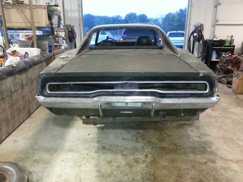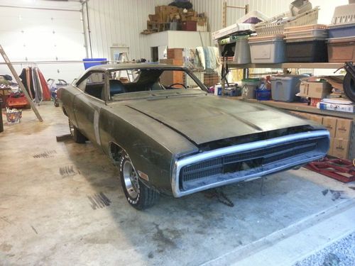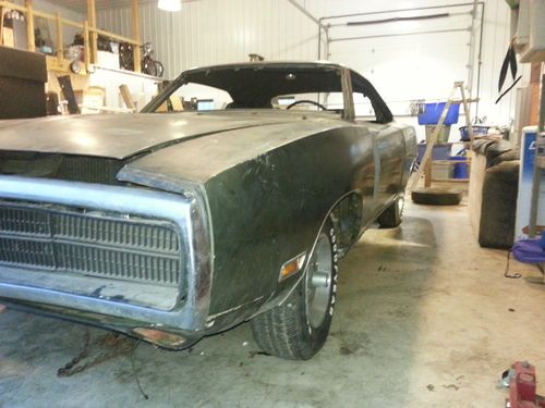 Up for bid is a real 1970 DODGE CHARGER RT/SE 440 SIX PACK. The VIN TAG, FENDER TAG, DOOR STICKER, CORE SUPPORT, TRUNK RAIL and TITLE all match. This Dodge Charger with its 440-6v option is 1 of 337 ever produced with the automatic transmission per Galen Govier (white book). The body is rough and will require restoration, typical of a b-body Mopar. The doors and trunk lid are not attached to the body, the automobile was being prepped for restoration. The original engine from air cleaner to oil pan is not present, instead a 383c.i.d. engine dated AUGUST 28, 1970 resides in place (this is the best I can see as I do not have a lift, the transmission is not the original). The items you see in the pictures below are what I have for the vehicle. PARTIAL LIST OF PARTS Hood, Hood Hinges, Fenders,Chrome Bumper (front and rear), 1970 Grill, Six Pack K-Frame Asy.( with swaybar, control arms, etc.), Original 26” Radiator, Original Wiper Motor, All Electrical Wiring (seems to be intact), Doors, Transmission, Driveshaft, 8 3/4 Rear Axle, Magnum Wheels, Glass (front, rear and pass. Side), Trunk Lid, Tail Panel Trim, Misc. Chrome Trim for Windows and Vinyl Top, Rally Instrument Cluster, Front Bucket and Rear Seats, Door Panels, Rear Inner Tail Light Cover. Just to name a few. From what I can tell most of the parts are ORIGINAL to the car, meaning they are date-coded or specific to this car. If you don’t see it –ask and I will check for you. I have no use for this vehicle so anything that has been acquired for it is in this auction. Please, before asking to check something for you, look at the pictures very closely as I have photographed any and all parts that come with the automobile. FENDER TAG LINE 1: R21 V8F 26 END LINE 2: J25 J45 L31 M21 M31 N85 LINE3: V1F A01 A36 A47 C16 C55 LINE4: EF8 CRF8 EF8 A10 012725 LINE5: E87 D32 XS29 V0G (CONSECUTIVE UNIT #) · E87=440-6V ENGINE · D32=727 HD TORQUEFLITE TRANS · XS29=CHARGER SE 2 DOOR HDTP · V=440 390 HP 3-2BBL 8CYL · 0=1970 · G=ST. LOUIS, MO · (CONSECUTIVE UNIT #) · EF8=BODY PAINT (IVY GREEN) · CRF8=BUCKET SEAT (IVY GREEN) · EF8=UPPER DOOR FRAME (IVY GREEN) · A10=PRODUCTION DATE (OCT. 10, 1969) · 012725=ORDER NUMBER · V1F=GREEN VINYL TOP · A01=LIGHT GROUP · A36=3.55 HP AXLE PAKG. · A47=SE PKG. GROUP · C16=CONSOLE · C55=BUCKET SEAT · J25=3SPD. WIPERS · J45=HOOD HOLDDOWN PINS · L31=FENDER MOUNTED TURN SIGNALS · M21=ROOF DRIP MOLDINGS · M31=BELT/HOOD MOLDINGS · N85=TACH · R21=AM/FM RADIO · V8F=GREEN TRANS STRIPE · 26=26” RADIATOR · END=END OF OPTIONS I have listed all I know about this 1970 DODGE CHARGER RT/SE 440 SIX PACK automobile. I have described this automobile to the best of my ability, I am not a restoration expert. If you have any questions please ask. I will try to answer promptly. All sales are final. I have this vehicle up for sale locally so the auction may not go full cycle. You are buying a vehicle that needs restored it will not move under its own power. I will aide on a limited basis in the transport of the vehicle but I am not responsible for any service or fees associated with the transport, buyer is responsible for transport. . Payment is required at end of auction by certified bank check. I will contact buyer through email or telephone if a number is provided. I will assume no responsibility for this vehicle in transport. Buyer assumes any and all risk and or responsibilities for this vehicle. You may come and check the vehicle out, I encourage you to do so. You are bidding on this automobile at your own risk if you do not look the automobile over before you bid. ALL SALES FINAL. THIS VEHICLE IS NOT COMPLETE AND WILL REQUIRE ASY./RESTORATION.