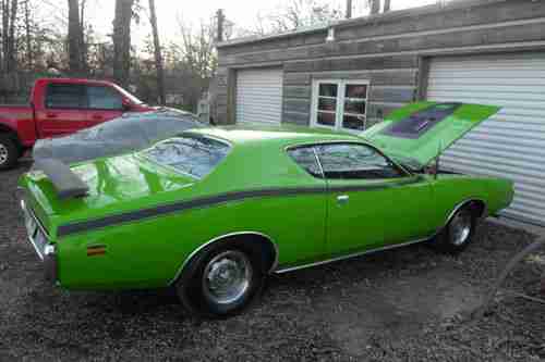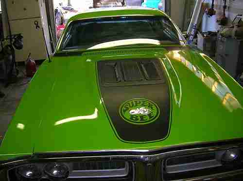 This ia a outstanding Super Bee Tribute car,It has all the Super Bee decals, Hood Trunk spoiler, even dash has Super Bee on it, The only thing it does't have is the Super Bee price tag.Car is rust free bought new in TN. Engine is a Number matching 383 Bored 30 over with purple cam, This car is a true muscle car! Trans 727 with a stall. At a stop the cam sounds off great! Takes off nice and smooth, Truely a Pleasure to drive, orig speedo reg. 150 MPH. Has a 83/4 posie 391 I think? The sassy grass green and black stripes put's it over the edge! Interiour is orig and very nice. The person i bought car from said it took over 12 years too this point, It is not a perfect show car but it is a perfect cruz car. I was going to block it out and respray it just too take it to the next level. But as you can see it doesn't have to be done that way any time soon, If car sell's I will send 1 gallon of PPG base coat clear coat with it. To many new parts too list, Please come and look if you can't come send someone, This is truely a nice car, It's time to pass it along and get something different, Spring is just around the corner. Resv is set very low for what your getting, Ask all questions before bidding. need to sell