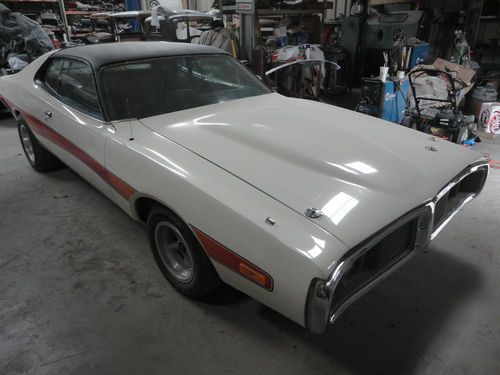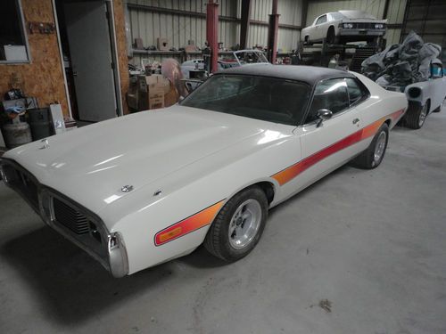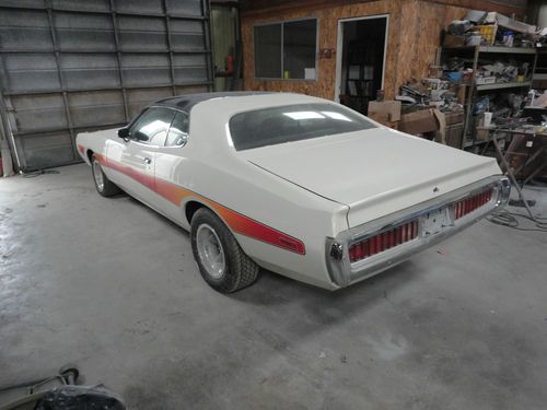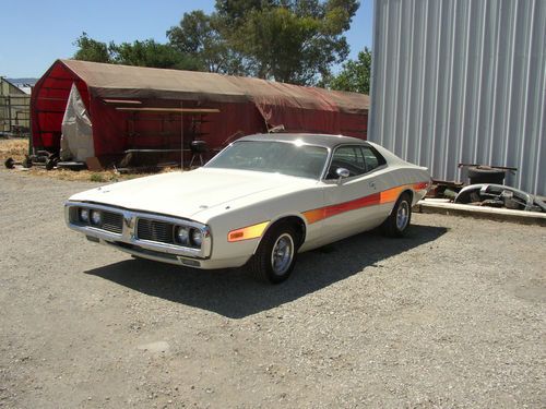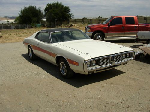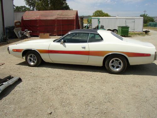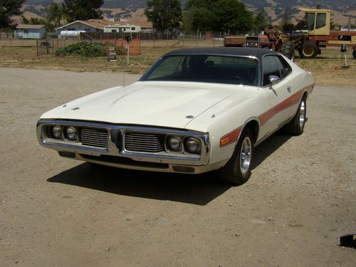I HAVE A 1974 DODGE CHARGER SE. I AM THE SECOND OWNER OF HE CAR. I HAVE HAD THE CAR FOR 5 YEARS. THE CAR IS IN VERY GOOD CONDITION, IT HAS ALL NEW HEAD LINER, THE BUCKET SEATS AND BACK SEAT ARE NEW, CARPET. THE CAR HAS BEEN REPAINTED AND A NEW VENAL ROOF PUT ON. THE CAR WAS ORDERED WITH THE 440 PACKAGE BUT CAME STOCK WITH 318CI. BUCKET SEATS CONSOLE 120MPH DASH WITH GAUGES, AM/FM RADIO, BUBBLE HOOD, HOOD PINS, AND STRIP ON THE SIDE. IT ALSO HAS FRONT AND REAR SWAY BARS, POWER BRAKES AND POWER STEERING, COMES WITH A/C (IT NEEDS CHARGED) BUMPERS (FRONT AND REAR HAVE BEEN RECHROMED) THE ONLY THING THAT I CHANGED IS THE A/C COMPRESSOR AND THE AMERICAN WHEELS. EVERY THING ELSE IS STOCK ON THE CAR. YOU MIGHT WANT TO CHANGE THE EXHAUST ....