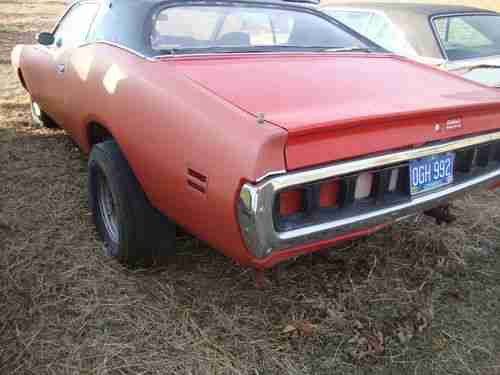 Two 1971 Dodge Chargers . One of them is a 383 4 speed Charger 500 that has a 440 in it. The other is a plain Charger that came with a low perf 383 auto but the engine and trans are long gone. The 500 has a 440 and still retains the 4 speed with a 8 3/4 . The red 500 is sort of rusty but could be fixed .