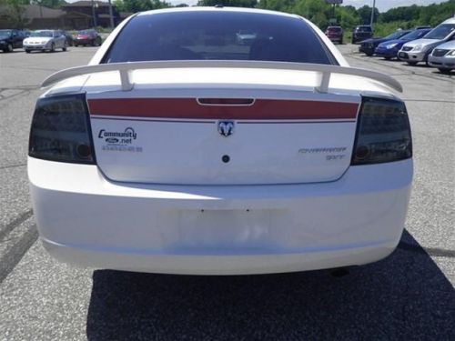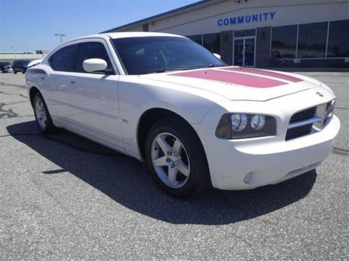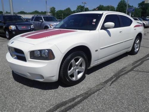 Zero accident clean carfax! 2010 model Charger SXT! White exterior, gray cloth interior. 3.5L high output V6, 4 speed automatic transmission. Fog lamps, spoiler, graphics package, keyless entry, aluminum wheels. Cloth bucket seats with center console and shifter. Power driver seat with power adjustable foot pedals. Sony touchscreen CD/DVD player, bluetooth with external microphone. All power features.