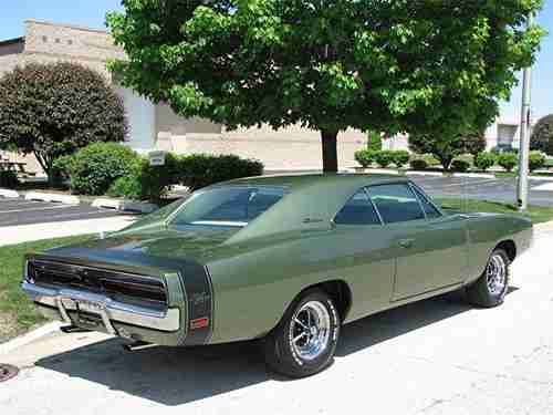 The RT Was The High Performance Model For Charger In 1969 And Was A Popular Car Model Being Featured In Both Movies And Television. Full Frame Off Rotisserie Restoration Done On This RARE #'s Matching R/T 440 Engine, 4 Speed Transmission, Tachometer, Woodgrain Console, Track Pak - Absolutely Stunning F5 Medium Green Metallic Paint With Black Tail Stripe And White Bucket Seat Interior, Raised White Letter Tires And Magnum 500 Wheels.