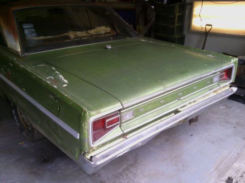 | Ok just pulled this little jewel out of a barn,,been in family sense 1970,,car runs on boat fuel tank and runs great,tranny shifts fine,hadn't been run in 6 months till today i put a little gas in carb and she fired right up,dont have boat tank anymore,,last time car was actually drove on roads was 1980, car is completely original ,number matching car ,and all there every peace,,car needs a full restoration ,floor pans are decent not perfect,trunk pan has a couple holes,fuel tank unknown condition,hasn't had fuel in it in years,frame seems decent,for what i can tell,this is a great start on a old mopar muscle car,,vinyl on seats is bad,but the rest is fine,this is not some beat up peace of crap,there or no dents anywhere on this car,,will need lower quarter on pass.side but drivers side could be saved,both rocker panels,are fine as well as bottom of the doors,,hood and deck lid are fine,car will start and runs great and quit,yes still has the original exhaust,,car can be delivered a short distance for a fee.. |
