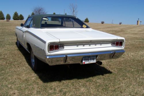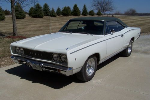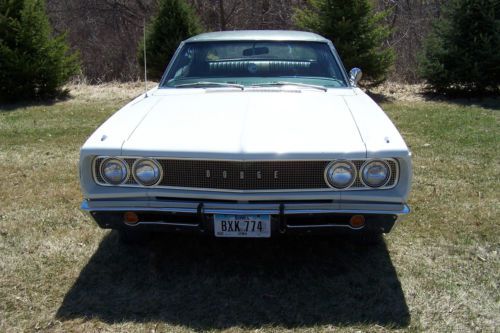 | I'm selling my 1968 dodge coronet 440. it has a 383 2brl automatic transmission. It is 100% original never touched, it's been garaged in my family since 1999 never seen rain or snow, totally rust free. runs great, some times it gets warm if idling in a long parade. I just had a mechanic totally go through the whole car and it only needed plugs and carburetor kit which i had him do, every thing else was perfect. the gas gauge is the only thing that doesn't work. there is a small dent in the passenger rear quarter down low, previous owner pushed it out no bondo. this car originated from Idaho and has been in Iowa ever since. I have the original hub caps. as far as i know the car has never been smoked in.     |