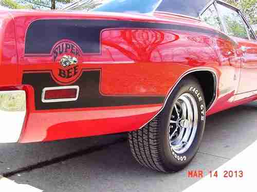 This is a Real 1970 Dodge Super Bee N96 Air Grabber Hood 383 car, I have the original numbers match 383 that goes with the car, it now has a built 440 in it and i have the recipt for the motor with total 5500.00 in motor alone, the car runs great and sounds great, it has the functional factory air grabber hood, and has an 8 3/4 3:23 posi rear, the car shows 89000 miles but actual mileage is unknown, the motor has about 1000 miles or less, this car is 1 of 1254 ever made and in exceptionally great condition with all original body panels, this car has no blisters or rust and the undercarriage and trunk are in great condition, the paint on the car is in great condition it has had a repaint and was painted the original color, it has new upper and lower control arm bushings and a new battery, it has the original radiator, with power steering, the car has no build sheet but it has the fender tag and the codes on the tag are as follows.........V1X.....N96.....FE5....H2X9.....TX9.....C12.....E63.....D32..., Again this car is 1 of 1254 ever produced in 1970 and is exceptionally nice and runs and drives great, the interior is in very good condition as well, The car has rechromed bumpers and all the trim on the car is in great condition, this car is for sale locally so i reserve the right to end the auction at anytime, this car is sold as is with no refunds or warranties, if your looking for a nice Super Bee this is the car, for more info call 330-990-8800 my name is Dale, Please Serious Bidders only, Thanks for looking.