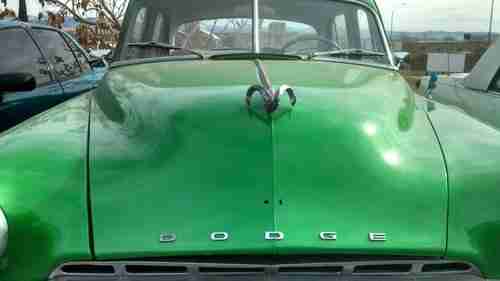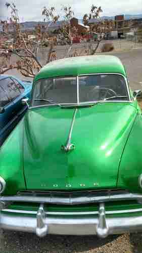 What i have is a Bright green 1952 Dodge Coronet...This is a AZ Car and the rust on it is next to nothing for its age..Just basic surface rust and really none of that so the rust is not a issue..The body itself is in near excellent condition a slight light dent on rear panel but is not visible unless your looking for dents...exterior is awesome...Interior in the other hand could use some work, by no means is it gutted or anything..Headliner is in almost perfect condition except in rear end next to back window it has fallen out but no rips,tears,burns,nada..all interior dash bells and whistles are there and seat are nice and carpeting in it...The engine in it is what I believe tobe a 1986 buick regal 3.8 v-6...There is on drivers side front window cracked glass not enough tobe none driveable...and passenger front window is cracked..THIS CAR RUNS AND DRIVES...Also just had the car fully rewired so everything is fresh in that neck of the woods...Only reason why I want to get rid of it, is because I want something with a little more attitude..Not sure what else I'm suppose to put in here about the car so if you need anything else just hit me up...Please refer to pics for most of the stuff....If I have done something wrong as far as the posting also please let me know...Thanks for your time and if you have something to trade please let me know....BUYER IS RESPONSIBLE FOR SHIPPING....I WILL NOT ACCEPT CASHIERS CHECKS AND WILL NOT DELIVER UNLESS OTHERWISE NEGOTIATED...NO RESERVE |