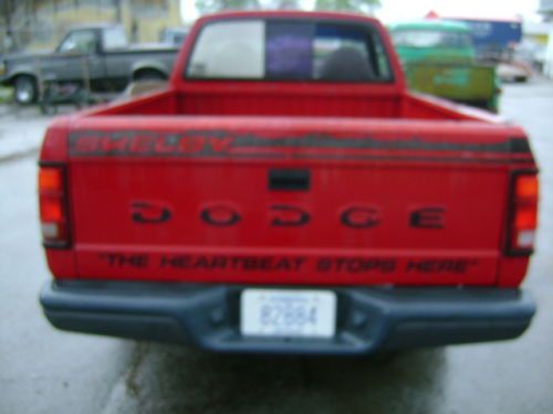 This is #719 of only 995 total red Shelby Dakotas. There were 1475 in all. The rest were white. So, that being said, even though it is tired and needs restored, it is rare as collector autos go and they were only made this year, and they were packaged by the legendary Carol Shelby operation. This one runs strong and is fun doing burnouts and doughnuts; figure eights and stuff like that. This would be a cool father & son project truck, and an investment as it is only going to be more valuable as time goes on. The VIN is: 1B7FL96Y0KS131570 and it has a title.