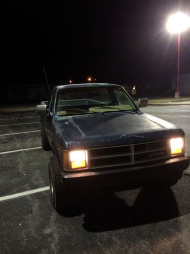 this is my dads farm truck he just dont need any more,hes had it for 16 years or more,and its been a great truck,like i said it was a farm truck so it does have some bumps and bruises look at the pictures,but if your wanting a cheap reliable truck this is it.it a 1989 dodge dakota 4x4 truck,with a v-6 stick shift,it pulls like a diesel truck.it has a full 8 foot bed to haul the mega load.the miles are orginal we live about 30 miles from lexington in mount sterling,ky.and thats where the truck will have to be picked up at,or you arrange the shipping.if you live close come by and check it out,just call me and we can set up a time..my number is 859-404-9500 just call.or email if you have any questions.thanks for looking.