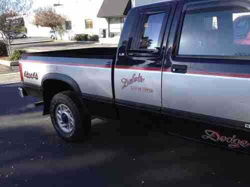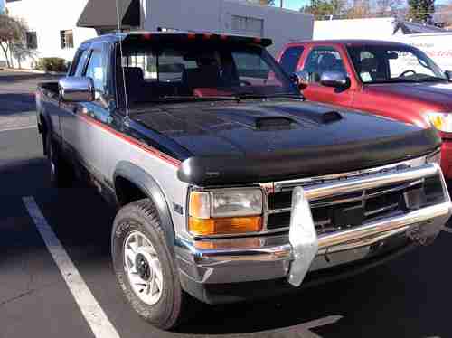 1992 Dodge Dakota limited,beautiful truck, v-8 automatic 4x4, loaded, stereo system, extended cab with rear foldable bench seat, long bed with bed linear, medium size truck, custom mag wheels with almost new tires, only 88-k miles, super clean interior & exterior, lots of extras,custom chrome tube bumper, front hood spoiler, wheel fender spoliers, rear window spoilers, front windshield light bar , sun roof, p/locks, p/windows, cruise control, cold ac, electric brake box, high density fog lights, trailor 2" reciever with trailor plug. have all factory manuals, clean arizona title, clean car fax report, no accidents, 1-owner, lots of service records reported, runs great , every thing works, ready to go any where. Flaws are that truck has some rust on the under carriage, see pictures. Other wise very nice truck. Pride of ownership.