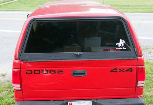 This truck runs great. It is the 5.2 L Magnum. Motor is strong, Tranmission shifts strong and where it is supposed to. 4 wheel drive works great in high and lo. Tires are very good with lots of tread left. As shown in the pics, it has a camper top on the bed with a bed liner also. Interior has no rips or issues. Belts work. Less than 200 miles ago it had new calipers, rotors, and pads installed on all four wheels. I pulled a two horse slant trailer with one horse a couple of times and it pulled strong with no issues. It looks good with typical clearcoat finish issues on the hood and a little here and there. Radio works as does the tape player. 12 v DC outlet works. Has a pass through sliding window between cap and camper top. Only notable issue is the air conditioning works intermittently. One day it does and another it doesn't.