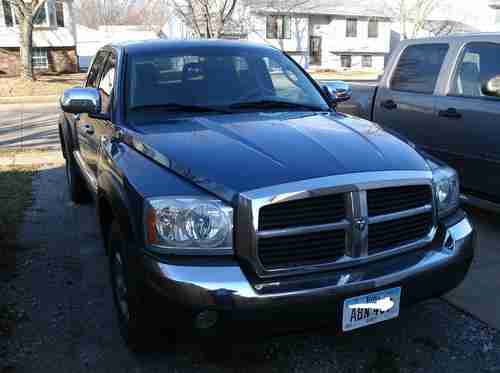 2005 Dodge Dakota quad cab 4x4, v6 auto trans. Runs wonderful, tires are almost new about 90% tread left on them. Interior is clean no rips or tears and is about 8/10 condition, only typical wear and tear same as exterior and engine. Runs like a top, exterior doesnt have any major dents or scratches. Its in good shape. title is clear, and even has a tonneau cover on the bed to help get better mileage, and protect your cargo. any questions please ask. It is being sold due to too many vehicles for a couple to have so this one we dont drive often so its the one being sold. buyer will be happy with this truck as it is very nice and well taken care of.. Non smokers truck also!
