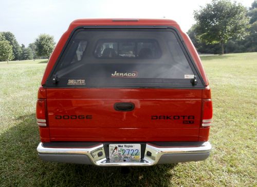2004 DODGE DAKOTA SLT PICKUP TRUCK. 45386 MILES ON THIS SECOND OWNER. GREAT SHAPE INSIDE AND OUT. THIS TRUCK HAS A V6 ENGINE WITH A 5 SPEED MANUAL TRANSMISSION AND IS 2 WHEEL DRIVE. IT IS EQUIPPED WITH POWER WINDOWS, TILT STEERING, POWER LOCKS, CRUISE CONTROL, A/C, AM/FM/CD, AND HAS NEW FRONT TIRES WITH 3/4 TREAD LEFT ON REAR. INCLUDED WITH SALE IS A BED LINER AND MATCHING BED CAP($1200) WHICH CAN BE SEEN IN PICTURES. THE TRUCK IS A SEMI DAILY DRIVER SO MILEAGE MAY NOT BE EXACT AT TIME OF SALE BUT WILL BE CLOSE. TRUCK IS LOCATED JUST MINUTES SOUTH OF HAGERSTOWN MD IN FALLING WATERS WV. IF QUESTIONS IT IS BEST TO CALL 540-686-6551 AS SELLER IS ON THE ROAD OFTEN. ONLY SELLING FOR DESIRE TO GET A FULL SIZE TRUCK. PLEASE NO CALLS OR EMAILS ASKING RESERVE. THANKS AND GOOD LUCK BIDDING.