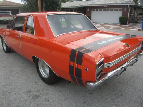 ALEX FOR ANY INFO 954 937 8271 SHIPPING AVAILABLE!! INTERESTED IN BUYING THE CAR OUTRIGHT .... GIVE US A CALL AND LETS MAKE A DEAL!!!!! 954 937-8271 1968 DODGE DART GTS ORANGE 440 CID V8 EDELBROCK MOTOR MSD Distributor and Coil 600 HP EDELBROCK ALUMINUM HEADS VICTOR 440 INTAKE HOLLEY CARBURATOR DOUBLE PUMPER HOOKER FENDERWELL HEADERS SOLID MOTOR MOUNTS ALUMINUM RADIATOR ELECTRIC FAN SUBFRAME CONNECTORS 727 AUTO 3-SPEED TRANSMISSION HURST SHIFTER ROLL CAGE COWL HOOD SCOOP PACER RACING RIMS ET RACING TIRES (28 TALL X 12.5 W X 15 RIM) VINTAGE AC CAN BE ADDED FOR $1,400. GRIFFEN RADIATOR 8 3/4 RACING REAR ROLL BAR PROSERIES G FORCE RACING GEAR SEATBELTS FUEL CELL AND ELECTRIC FUEL PUMP MINITUB PRO-COMP MEMORY AUTOMETER POINT SEAT BELT DRIVE SHAFT SAFETY LOOP HURST SHIFTER AUTO METER TACH WITH SHIFT LIGHT 6000 RPM CHIP NEW GUAGES DRUM BRAKES FULL EXHAUST WITH STAINLESS MUFFLERS TRUNK MOUNT BATTERY & CUT OFF SWITCHES OPTIMA BATTERY