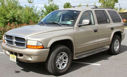 Up for sale my personal truck 2002 Dodge Durango SLT Plus, with only 108800 miles, I'm the 2nd owner purchased this car from the dealer in Paramus NJ , according the autocheck there was only one owner before me in Bergen county . No accidents , Very clean, Beige Leather, Third row seating, 5 speed automatic , 4.7L V8 engine, current NJ (until 11/2014 ) state inspection. Need to sell, because I have a company 4x4 car now . Recent updates : battery from Walmart with 2 years replacement warranty , 3-way speakers in 4 doors, front rotors and pads (rear drums checked and adjusted too ), changed brake and transmission fluids , antifreeze . Replaced fuel filler neck, 8 spark plugs, upper and lower ball joints ,front right bearing , all 4 HVAC actuator motors , blower motor w/resistor ( all repair receipts available ) . There is couple of dings on the body and hood has a long deep scratch ( car was keyed ) , right second door has a dent on upper part . Factory tinted windows , heated both front seats , trip computer and info display on roof as well as sunglass holder , cruise and radio controls on steering wheel , car manual , 2 set of keys. Great sound stereo + full tank of gas ! Please keep in mind this is used vehicle and selling as is , where is, with no warranty offered . I prefer local pick up , but can assist with delivery in every way I can . If you need additional pictures or details please let me know . Please call 908-500-2729 for any questions . Thank you for reading this .