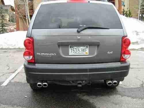 SELLING MY 2005 DURANGO IN PRISTINE CONDITION, BRAND NEW LEATHER INTERIOR, BRAND NEW CARPET, INTERIOR LOOKS LIKE THE DAY IT CAME OFF THE SHOWROOM!!! MECHANICALLY PERFECT, ABSOLUTELY NO ISSUES.. I HAVE JUST HAD A COMPLETE TRANSMISSION FLUSH AND SERVICE, THE INDUCTION SYSTEM CLEANED, NEW EXHAUST MANIFOLDS INSTALLED UNDER WARRANTY, REMOTE START, NEW WINDSHIELD, COMPLETE NEW EXHUAST SYSTEM, TUNE-UP, EVERY LEAK THAT COULD BE FOUND HAS BEEN FIXED. ALL MECHANICAL WORK HAS BEEN PERFORMED AT EITHER STEAMBOAT DODGE OR VICTORY DODGE IN CRAIG. YOU CAN TAKE THE VEHICLE TO HAVE IT INSPECTED AT THE DODGE DEALER OR YOUR OWN MECHANIC AND IF ANYTTING IS FOUND WRONG, I WILL HAVE IT REPAIRED AT THE DEALERSHIP!!!!