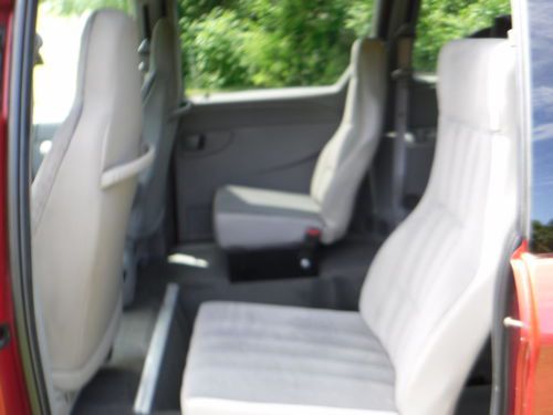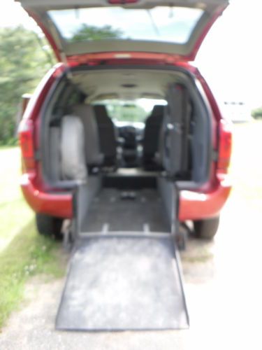 Functional and practical mobility. SE package Grand Caravan equipped with ramp and wheelchair locking mechanism. 100% handicap accessible Still has conventional seats making this a very versatile vehicle. In good condition for year and mileage. Red paint shines nicely. Normal wear. Some small paint blemishes on front passenger side. No major rust. Small cosmetic crack in bumper cover plastic, as seen in title photo. Ramp is unobtrusive, mounted in rear. Fool proof system that doesn't require expensive electronics.Build to last with thick, solid steel. Shows very little wear. Super easy access. Assisted-Manuel lift does all the heavy lifting for you! In good mechanical condition. No lights, no issues. Ready to go. V6 engine is very economical and well powered. Practical enough for daily driving around town, but comfortable enough for to make long trips a breeze. This versatile vehicle offers one of the best values for price. In addition to being 100% handicap accessible, this van also has increased cargo capacity. Interior is very spacious allowing for the transportation of nearly any variety of goods, in addition to multiple passengers. Offers similar cargo space to Dodge Sprinter for a fraction of the price Truly one of the best deals on Ebay. Can safely and reliably suite what ever needs you may have. If your are interested in the vehicle and have any questions, please call Fred