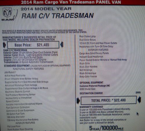 2008 DODGE GRAND CARAVAN CARGO VAN HAS A CLEAN TITLE WITH NO ACCIDENTS! ONLY 73K MILES. CUSTOM COMMERCIAL INTERIOR COST $3,500. VERY CLEAN* V6* DRIVER SAFETY FENCE* SAFETY TINTED WINDOWS* COMMERCIAL FLOORING*COMMERCIAL STORAGE SHELF* METAL LOCK BOX WITH KEY FOR YOUR TOOLS* VAN IS EASY TO DRIVE AND PARK* COLD A/C* POWER WINDOWS *POWER DOOR LOCKS*REMOTE ENTRY*DRIVES AND SHIFTS SMOOTH *A NEW 2014 DODGE CARGO VAN THAT HAS AN EMPTY BACK WILL COST YOU $23,000 (SEE MY PICTURES) MY 2008 HAS THE SAME BODY STYLE AS A 2014 (SEE MY PICTURES) SMALL BUSINESS MONEY MAKER * PERFECT FOR A PLUMBER* PAINTER* MOBILE AUTO REPAIR* AIR CONDITIONING REPAIR* SOLAR COMPANY* LANDSCAPER * SMART SMALL BUSINESS OWNER NEEDED! CARGO VAN IS LOCATED ON THE ISLAND OF OAHU IN HAWAII* CALL 808 222-5055 WITH ANY QUESTIONS THANKYOU DANNY