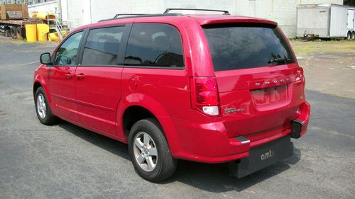 Offered by Kenny's Auto Sales is a 2012 Dodge Grand Caravan Rear Loading Wheelchair Mobility Van. It was converted by "AMT " American Mobility transport in August of 2013 for commercial use. The Rear Wheelchair Passenger Area was designed for luxury commercial service and has never been used. It is very nice Red exterior Color with a Dark Slate Cloth Interior and Black Carpeting with middle row Side Mounted Jump Seats and Heavy Duty Vinyl Flooring in the Wheelchair Bay and a manually operated rear Wheelchair Ramp with a "State of the Art" single point rear ramp release . The Wheelchair Bay has rear opening height of 56" an the Wheelchair Bay is 74" long by 32" wide. This Van has 49950 original miles and Runs and Drives 100%. All on-board systems have been checked and are in good operating Condition. It features a smooth running 3.6L Flex Fuel V-6, Automatic Transmission, Front & Rear Air Conditioning and Heat, Power Windows including Power Side Door Windows, Power Door Locks with Remote Entry with one Key Fob Clicker that operates the Power Side Doors and Power Rear Door, Am Fm Cd DVD Player, Tilt Wheel, Tire Pressure Monitoring System and Cruise Control. The Tires are in good condition and all have 5/32 or better Tread left and The Front brakes and Rear Brakes are in very good condition. The Van has just been serviced and is ready to travel. In the Pictures the Red Exterior color shows a little lighter than it actually is, This is a gorgeous Van that is in excellent condition! Please call Kenny at 215-938-9333 for more information on this Van or the may other AMT Wheelchair Vans that we have in stock. . Kenny's Auto Sales, 820 Welsh Road, Huntingdon Valley, Pa. 19006 215-938-9333