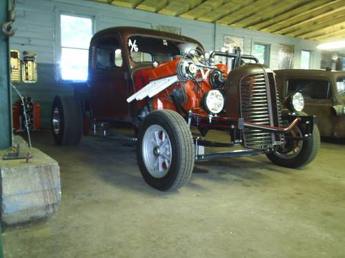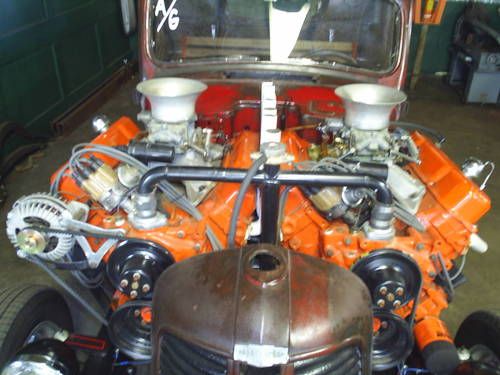 this is a 1937 dodge truck built as a rat rod 60s gasser. the cab and grill are original patina clear coated. i hand built the rest. 2x3 frame. 66 econoline front axle on parallel leafs. 8 3/4 mopar rear on coil springs and 6 foot long ladder bars (fully adjustable). hand made sheet metal bed cleared. frame and rear end striped painted and cleared. huge cube van radiator with electric fans in bed cools great even parades. twin 400 big block chrysler pump gas engines gone through with new mopar 484 lift cams, 16 zoomies with baffles (still stupid loud). rebuilt twin 727 tranys with full manual valve bodys. ties into new process 205 cast iron gear on gear transfer case. cant give all my secrets away on how it all works (due to copycats) but runs on passenger side motor as primary then u can fire up drivers side pull transfer case lever and engage both. tons of engineering went into this and is very easy to work on if u have lift access. cab lifts off with 4 nuts exposing all wiring. entire floor unbolts exposing trannys and rest of drive train. bed lifts off for radiator and battery. featured in RAT ROD MAGAZINE, won many awards including DIRTY DOZEN at the syracuse nats. people flock to look at this where ever u go most times u cant even see truck through people. funny to see people in their 60s and 70s laying on ground in stones and dirt to see under it. i never actually registered this due to way too many cars which is why i want to sell it too. i do drive this to shows and cruises (illegally with plate off another car) been driven about 8 miles to a cruise round trip many times with no problems. not the most comfortable ride, seat is a park bench ( so literally a bench seat and comes with pictured vintage helmet) brake and gas petals ( yes two gas petals side by side ) are in middle of cab so u have to do every thing with your right foot and straddle the left trans hump. im 6 ft 170 and fit no problem with a passenger too. was no paper work or vin plate so i bought a 38 dodge registration for the vin number. not a problem to get registered have done before take pencil etching of vin u stamp and paper trail going back 10 years which i will provide. couple bugs i never got around to fixing and would like to state are driver side door latch broken so put on dead bolt inside. no seat belts. originally never wired in headlights but then needed them for a late night cruise so put switch for them outside bye motor. windshield is lexan which some people may frown on but i have done for years in my other drivers. if ur looking for something to jump in and run cross country or on interstate dont bid. if u want the coolest loudest novelty. the most attention any where u go and never see one like it ur the person for this!