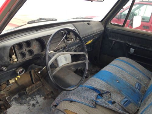 would make a powerhouse of a truck with little work . engine and trans are in great running shape. truck has little rust but does have dents dings scratches. ect. interior is rough. but is a solid truck. does run and drive as is. but wouldnt drive it far with the tires or bad steering box |
