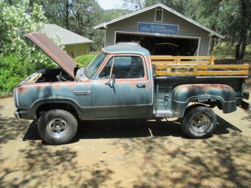 1979 Dodge 150 Powerwagon Warlock II. 2nd owner sold new in Sunnyvale CA has never left northern ca. Truck has 360 with a 4 speed all original condition. NO Body Damage or rust original paint. The original Warlock Side boards have been stored inside and are nice. The engine has been rebuild at around 100k and runs good, doesn't smoke, has ca smog equipment still on it and the engine has not been modified This a very nice truck that would be easy to restore because of how clean it is. Please feel free to call 559-765-6352 for any questions.
