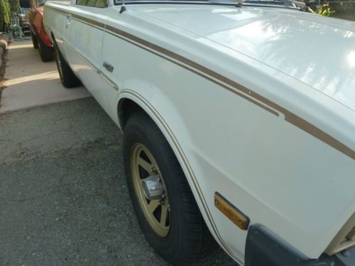 NOTE: Orange Pick-up NOT FOR SALE. Title is clean and registered until June 2014. It will NOT pass smog at its present state. Needs exhaust manifold repaired or replaced due to crack, Most of the emissions equipment was removed to install a weber 32/36DGV carb ($365.00). Body is near perfect with no rust issues ( nothing bubbling from rust...even battery tray and flooring. Wears all original paint (white), some minor dents and scratches , needs brakes service and transmission is leaking, but runs well and shifts smoothly. Pick up will be sold "as is" New buyer is responsible for smog if buyer wishes to register in CA. Otherwise it will be sold as a perfect parts truck, which is what I had in mind to restore my original truck, see pic: Orange D-50. Or taken to another state which requires no smog for registration, Or restored to its former glory. Feels free to google, youtube or wikipedia 1980 Dodge Ram 50 commercials. This will give the buyer an idea of what it looked like when being sold new, as well as general stats on the D50 line of Pick up offered by Dodge and Plymouth. There is online support...its great resource if you plan to restore or need general help, please do a google search for: mightyram50.net Condition Overview: Exterior: All original including gold vinyl graphics ( Standard option for sports package ), Paints is faded and no signs of a repaint, truck bed is fine, just the usual scratches for being used a pick-up. Has original Sports Package wheels, steering, bucket seats, but no side view mirrors A small dent at rear passenger corner, just below passenger side rear tail light is present. No signs of rust bubbling through the paint. just Some surface rust from exposed metal when the paint was scratched. The front valance ( below front bumper was painted black. No A/C, no power steering. Only emission part components I have are in the picture. Interior: All Original, Seats, dash, (interior has not been molested), dash and seats are cracked, door cards are original and undamaged, stock AM/FM radio with speakers are missing, headliner missing, sun visor ( sun damaged and faded ), Special Note: The Pick on auction is in relatively good shape for its age. There is no evidence of any collision or structural damage. Please email me any requests for further pictures of any part of the vehicle. There are sellers on ebay that have all the necessary parts to restore it if the new buyer wishes to do it. Very few D50s are left in this condition. Most of them have been run to the ground. This would be a great project for a full restoration. The pick-up will be sold as is with a bill of sale indicating that the car is being sold and disclosed that it cannot pass smog. It is up to the buyer to choose to use it as a parts car or to find all the emission parts to pass smog in California. Seller has some of the emission parts, but not all. See pics. Buyer will need to have a flat bed or tow truck to take the vehicle home. The pick-up runs but the rear driver's side brake drum is leaking at the wheel cylinder. This poses a safety hazard. The truck can be driven around the block and up to the tow truck without issue. Feel free to contact me at Crossworth1 at gmail. 925-348-2721 |