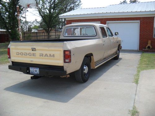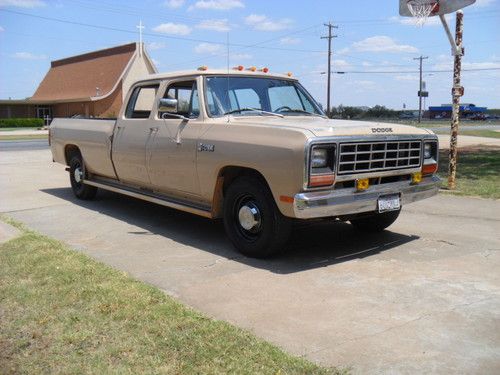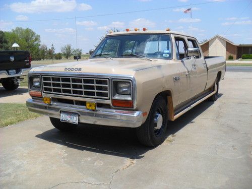 THIS IS A 2ND OWNER 1983 DODGE D350 CREW CAB 2WD LONGBED WITH A SINGLE REAR WHEEL, IT HAS A 5.9 LITRE V8 WITH AN AUTOMATIC, A/C, PS, PB, CC WITH 87000 ORIGONAL MILES ON IT, IT HAS NEW BATTERY, NEW STEERING CENTER LINK, NEW ALTERNATOR, 80% TREAD AND RUNS PERFECTLY, SHIFTS SMOOTHLY AND DOESNT SMOKE OR ACT UP IN ANYWAY.