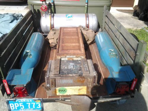 32 DODGE RAT ROD WITH WW11 HISTORY, HAS 318 INTERCEPTOR/904 TRANS. B-17 BOMBER THEME, THE SPIRIT OF ST. LOUIS-SWEET 17. THE GUY THAT BUILT THIS TRUCK, KNEW THE FLT ENG & CO-PILOT THAT FLEW THE SWEET 17, THIS WAS A MEMORIAL TO THEM. IT HAS 50 CAL WIRE LOOMS, MACHINE GUN SITE, DETAILED AIR CLEANER, HAND GRENADE SHIFTER, REAL B-17 GAUGES & REG GAUGES. 50 CAL CAN OPENER, GAS MASK, LIFE SIZE BODY WITH ARNOLD MASK AND REAL IKE JACKET,RIBBONS, PATCHES & BARS. HD SET W/SCULL CAP, BRASS FIRE EXTING, ARMY AIR FORCE SHIRT W/PATCHES. 2-100LB BOMBS ON BED W/ IRON CROSS TAIL LTS, 1945 AMMO BOX AND WOOD AMMO BOX, DUFFLE BAG W/ 2 PRACTICE GRENADES. MOON GAS TANK W/UNIQUE FILLER, WOOD SIDES FROM REAL ARMY TRUCK. VINYL ROLL UP WINDOWS. SMALL BOOK WITH WW11 PICS & LG BOOK WITH COPIES OF REAL FLT LOGS FROM FRANCE & GERMANY ALONG WITH PHOTOS & NEWSPAPER CLIPS FROM THE WAR. PRICELESS. PATCH FROM ACTUAL FIGHTER GROUP ON COVER. TRUCK IS FAST AND LOUD. TURNS HEADS EVERYWHERE YOU GO. |