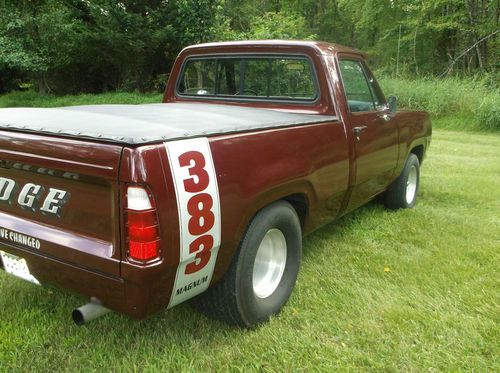THIS IS A 1979 DODGE D 100 CUSTOM BUILT STREET ROD HAS REBUILT 383 STROKER WITH OVERSIZED CAM, DETRIOT LOCKER REAR, FRONT BRAKE LINE LOCKER - PS - PB - FACTORY TACHOMETER - 8 TRACT STEREO CASSETTE AM/FM RADIO, I HAVE HAD THIS TRUCK 4 YEARS I PAID $12,500.00 AND I HAVE ENJOYED THIS TRUCK BUT I WANT TO SELL IT AND MOVE ON TO ANOTHER STREET ROD. TRUCK RUNS PERFECT NEEDS NOTHING, IN THE 4 YEARS I HAD IT NEVER BROKE DOWN ALL I DID WAS PUT GAS IN IT OIL CHANGE TUNE UP WASH AND WAX. IT DRIVES NICE ON HIGHWAY SOUNDS NASTY WITH THE CUSTOM EXHAUST. IF YOU STOP AT TRAFFIC LIGHT SHAKES LIKE A DRAGSTER WAITING TO BURN DOWN THE DRAG STRIP. YOU CAN SMOKE THE TIRES HAS FRONT LINE LOCKER TO LOCK FRONT BRAKES. IT WOLD COST YOU OVER 20 K TO BUILD THIS TRUCK. I WANT TO SELL IT IF YOU ARE SERIOUR MAKE ME AN OFFER !!!!!!!!!!!!!!!!!!!!!!!!!