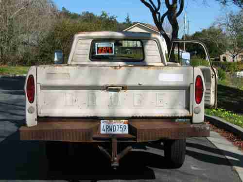 1967 dodge power wagon. W-200 camper special. This is the 3/4 ton long bed model (more like 1 ton really). 318 mated to NP435 4 speed transmission. Closed knuckle dana 44 front dana 60 rear, 4.88s in the axles. Power brakes. This truck runs excellent, drives very nice as well, used as daily driver . It was a one family owned, california truck before i bought it, always maintained and never abused. Body has very minimal rust, with the worst area being the front edge of the hood, rest of the body is amazingly straight and damage free, as is the bed. All the running gear is in good shape for the age and the 4 wheel drive works perfect in both high and low settings. Tires are good. All gauges works, as does the fuel switch to change between any one of the three (yes 3) gas tanks. Recent work includes: Oil and filter change, electronic voltage regulator, shocks(4), interior partially restored, slave cylinder, all fluids topped up. Needs: windshield, mufflers (already has duals with H pipe) both of which i might get to before i sell the truck, or can have done at buyers request. Overall a very clean and well kept example of a hard to find and awesome vintage 4x4, thanks for looking and enjoy!