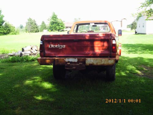 Up for auction is a 1977 Dodge Power Wagon Sno Commander with 360 automatic transmission, and Western plow. Has 70,511 original miles. Truck was a community plow truck in a development in Illinois. Bought it on Ebay April 2013 for the purpose of restoring it. Death in family forces sale of several items, including this truck. Never plated it, just plowed my own driveway last winter. It started right up when we had -14 degrees for a high in Northeast Ohio. Truck is really in incredible shape for it's age. It's going to need floor pans, has tin riveted down as temporary fix. Back bedrail rotted, tailgate hold bed together. Rear DMI bumper shot, seat needs reupholstered. All gauges work except fuel. Amp meter broke but aftermarket one installed. All lights on truck work. Heater fan only runs on high. Wipers work, as does window wash. Truck running on '99 Dodge Ram wheels, as the original split rims got accidentally scrapped. Power steering is amazing. Was having trouble with plow, however, it goes up, left, right without a problem, but going down was a problem frequently, slight exhaust leak around bottom of "Y" pipe. Haven't really looked into the issues with the plow after the winter was over. Sure I am missing something, but any questions at all please ask. Have a clean Illinois title, everything on the truck, is the way I bought it. I did nothing to it. For sale locally also. Good luck bidding